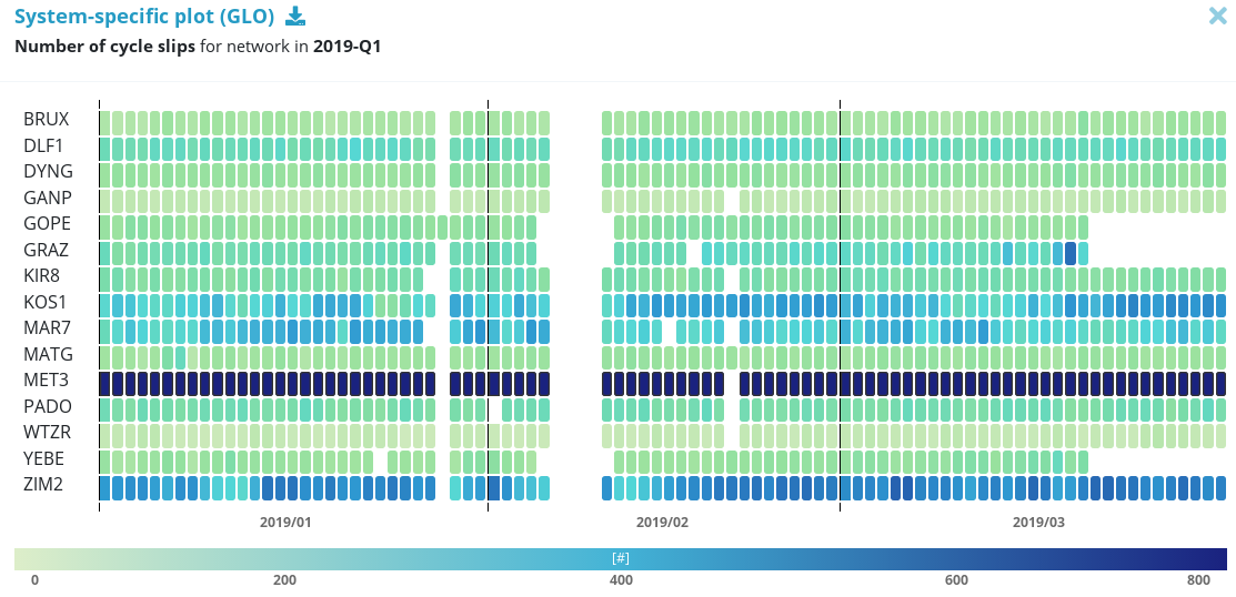 Various plots from such GNSS QC analysis can be generated when considering different goals, e.g. detail site environment monitoring, checking data file completeness and quality, assessing long-term site performance, degradation and changes, and others. Three generic view levels can be recommended for a station/network operator: