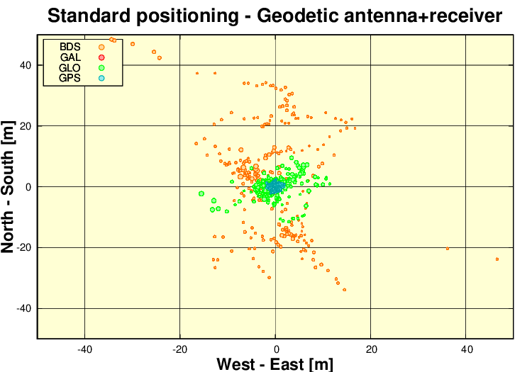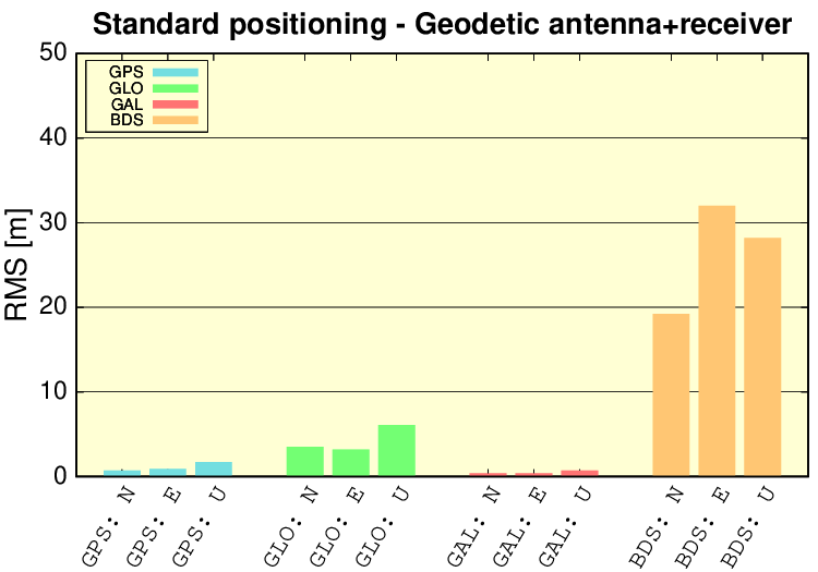 The complex control provides a complete view on data performance through the standard point positioning. The method includes the calculation of corrections for receiver clocks which might be important for specific stations monitoring too. The complex QC requires external information about satellite positions and clocks and a robust processing algorithm. Dual-frequency observations and channel numbers for GLONASS satellites are required too. The complex QC provides receiver clock corrections, dilutions of precision (DOPs), system-specific position estimates (a meter-level accuracy) and coordinate repeatability estimated from epoch-by-epoch positioning if the receiver persists in a static mode. Figures show examples of North, East and Up coordinate residuals and repeatability from a single day and from a 3-month monitoring period.